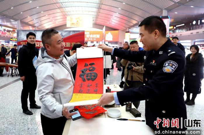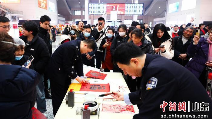 活動不僅“硬核”宣防,更充滿溫情服務(wù)。警營書法愛好者揮毫潑墨,將一幅幅滿載祝福的“!弊峙c春聯(lián)贈予旅客;“鐵警茶水吧”為匆匆旅人送上一杯暖茶,驅(qū)散冬日寒意!2022中國詩詞大會》年度總冠軍民警姜震,與往來旅客詩詞接龍,現(xiàn)場氣氛活躍;電子琴獨(dú)奏、歌曲演唱等文藝節(jié)目,更為候車大廳增添了節(jié)日的歡快與祥和。
