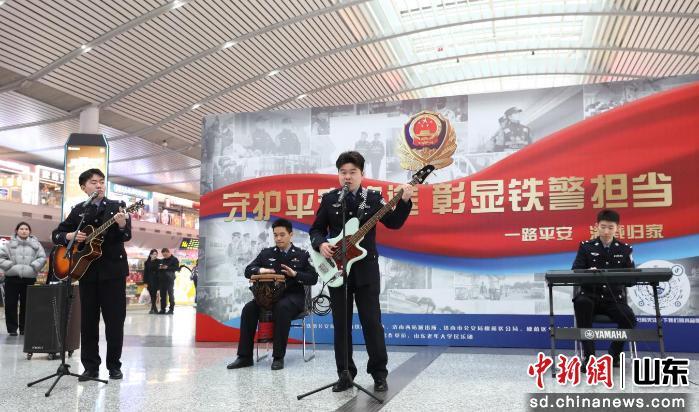 中新網(wǎng)山東新聞2月2日電 春運(yùn)首日到來之際,在熙熙攘攘的濟(jì)南西站候車大廳內(nèi),一場主題為“守護(hù)平安旅途 彰顯鐵警擔(dān)當(dāng)”的春運(yùn)安全宣傳活動,在悠揚(yáng)的民樂演唱《春節(jié)曲目串燒》中溫馨啟幕,為南來北往的旅客送上了一份特殊的新春“平安禮”。
