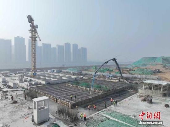 2月2日,青島風(fēng)河生態(tài)運(yùn)動公園項目主體封頂。張松 攝