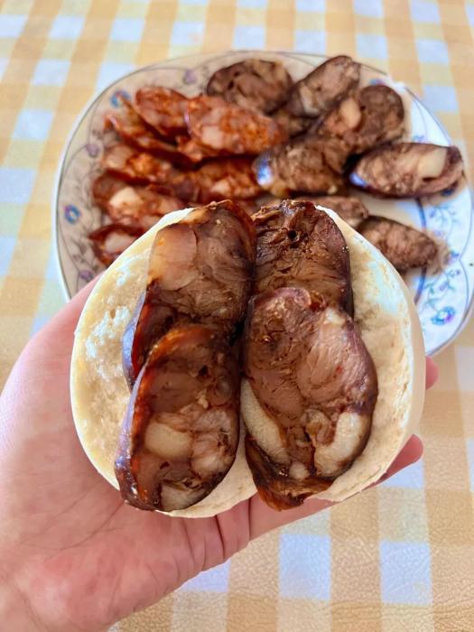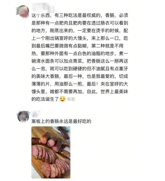 吃法上,山東人更偏愛蒸著吃,這樣最能鎖住原汁原味。蒸好的香腸切片,紅白相間,油脂透亮,掰開剛出鍋的大饅頭,夾上幾片,肉粒在嘴里爆開,不柴不膩,越嚼越香,缺點(diǎn)就是太費(fèi)饅頭。