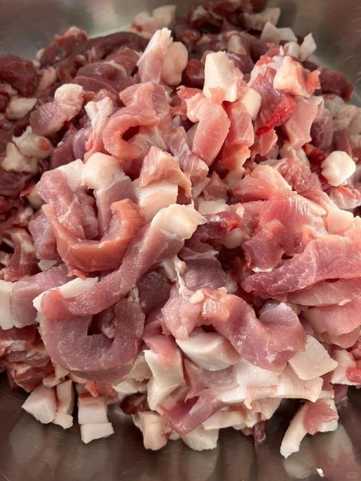 “三分肥七分瘦,灌出的香腸香又透。”灌香腸的肉首選前腿肉或后腿肉,多以手工切丁為主,為的是保留肉粒帶來的扎實(shí)口感。