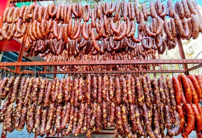 不像即買即食的香腸,灌的香腸需要晾曬半個(gè)月左右。