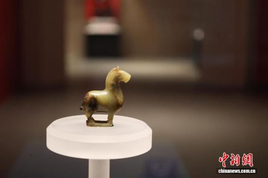 2月10日,在孔子博物館,戰(zhàn)國黃玉馬亮相孔府過大年文物展。中新社記者 趙曉 攝