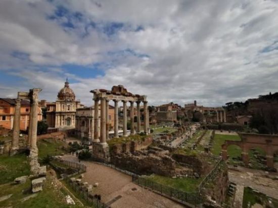 意大利古羅馬廣場。這片廢墟中包含神廟、政府機構、劇場、教堂、商場等遺跡,羅馬城最早的建筑很多位于此地,包括女灶神維斯塔的神廟。央視記者 張曉鵬 攝