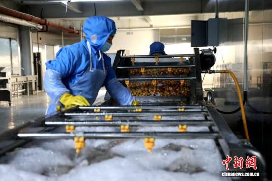 尚億食品生產(chǎn)車間內(nèi),工人正在對(duì)新鮮冬棗進(jìn)行篩選清洗。沾化區(qū)委宣傳部供圖