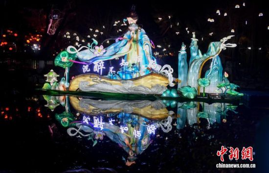 2月12日,山東濟(jì)南第45屆天下第一泉迎春花燈會試亮燈。景區(qū)內(nèi)燈火璀璨,年味滿盈,吸引了不少市民和游客前來賞燈。圖為花燈會進(jìn)行亮燈調(diào)試。