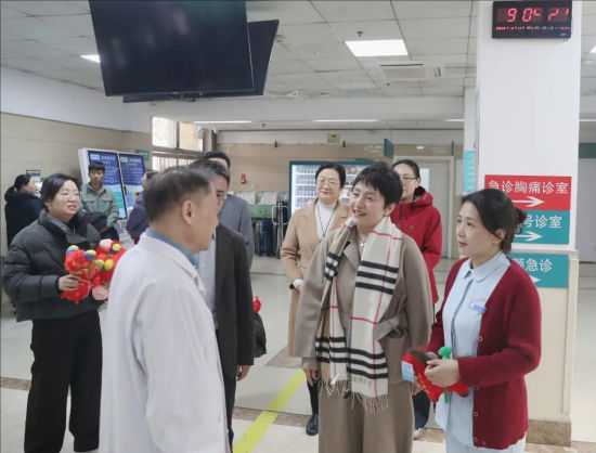 大年初一上午9點(diǎn),醫(yī)院黨委書(shū)記柳麗華,院長(zhǎng)馮世慶,黨委副書(shū)記、副院長(zhǎng)李泉,黨委副書(shū)記孟彥,黨委副書(shū)記孫永國(guó),副院長(zhǎng)靳斌來(lái)到臨床一線崗位看望慰問(wèn)醫(yī)護(hù)人員,為大家送去新春的問(wèn)候和祝福,對(duì)大家“舍小家、為大家”的愛(ài)崗敬業(yè)精神給予高度贊賞,更勉勵(lì)全體醫(yī)務(wù)工作者牢記健康中國(guó)使命,以專業(yè)之力守護(hù)人民安康。