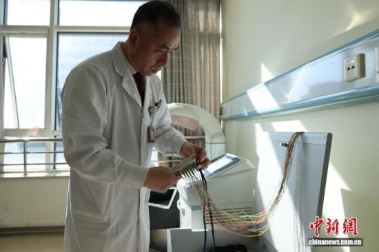 盧林在科室調(diào)試PSG多導(dǎo)睡眠監(jiān)測儀器。趙曉 攝