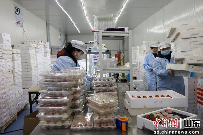 中新網山東新聞2月22日電(王嬌妮 欒欽程 張曉瑜)年味漫鄉(xiāng)村,暖棚春意濃。春節(jié)假期,山東煙臺棲霞市官道鎮(zhèn)的溫室大棚里,一顆顆色澤鮮艷、個頭飽滿的草莓綴滿枝頭,正被工人熟練地分揀打包,即將通過冷鏈、搭乘航班,出口至新加坡、泰國等國家和地區(qū),成為一份來自中國鄉(xiāng)村的“新春禮物”。