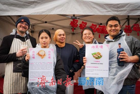 新春美食體驗(yàn)是本次活動(dòng)的一大亮點(diǎn),深受現(xiàn)場(chǎng)民眾的喜愛與追捧;顒(dòng)現(xiàn)場(chǎng),中國留學(xué)生志愿者化身“文化使者”,精心籌備了特色美食攤位,肉夾饃、包子、牛肉面、把子肉等多款地道中華美食依次亮相,香氣撲鼻。志愿者們?cè)跀偽磺懊β挡灰眩械臒崆檎故久朗、講解特色,有的細(xì)心為市民遞上熱氣騰騰的食物,用真誠傳遞東方暖意。