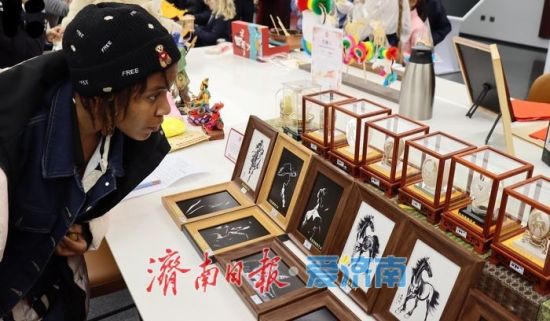 現(xiàn)場還設(shè)有非遺靜態(tài)展示區(qū),濟(jì)南刻瓷的精湛刀工、蛋雕的纖巧細(xì)膩令人贊嘆不已。不少外籍嘉賓在工作人員指導(dǎo)下試穿漢服,在古韻裝扮中拍照留念,真正實(shí)現(xiàn)了“沉浸式”文化體驗(yàn)。