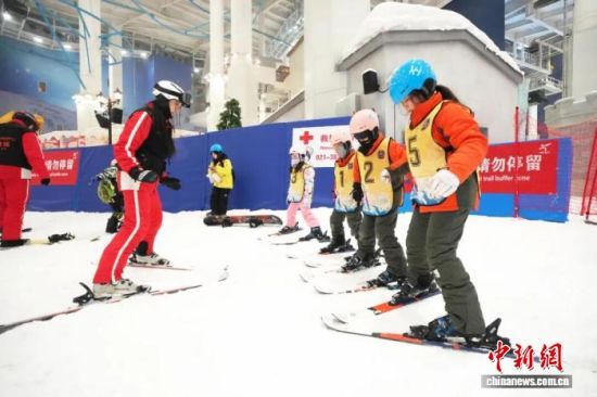 2026年2月3日,上海耀雪冰雪世界迎來(lái)寒假客流高峰。圖為寒假期間,小朋友學(xué)習(xí)滑雪。中新社記者 張亨偉 攝