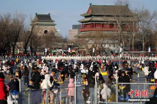 2026年1月10日,北京市民在西城什剎海前海冰場(chǎng)溜冰嬉戲。中新社記者 富田 攝