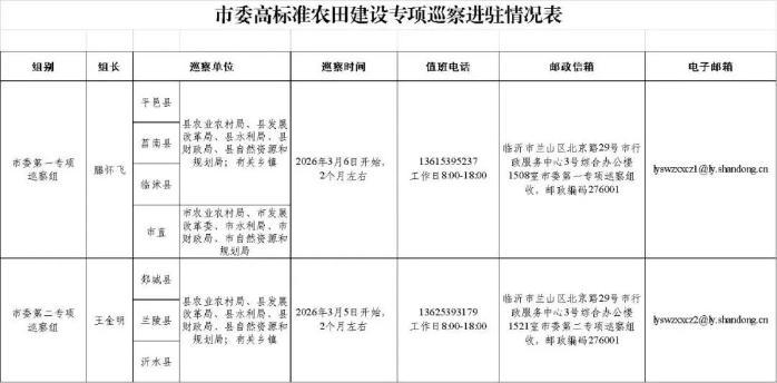 據(jù)悉,2個市委專項巡察組將在被巡察部門(單位)工作2個月左右,期間設立專門值班電話和郵政信箱、電子郵箱,主要受理反映高標準農(nóng)田建設領域的信訪舉報。巡察組受理信訪時間截止到2026年5月6日。