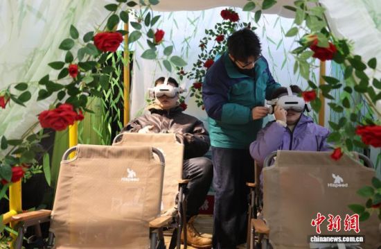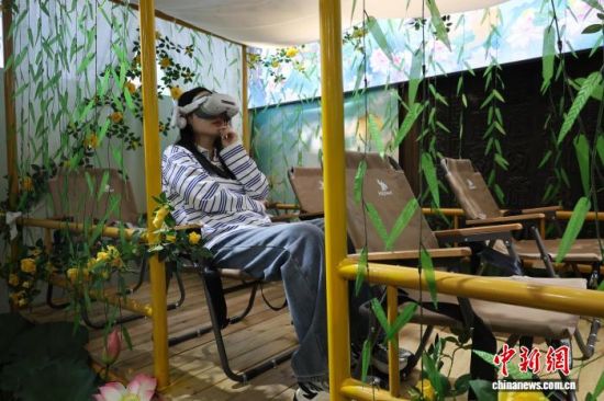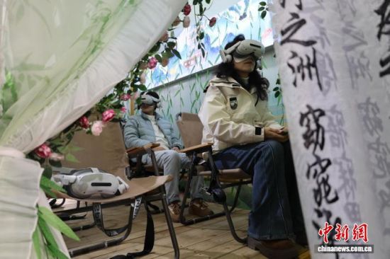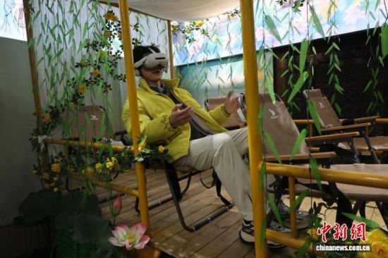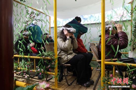 3月18日,山東濟(jì)南,民眾佩戴VR眼鏡體驗《趵突泉VR劇場·如夢令》。中新社記者 孫婷婷 攝