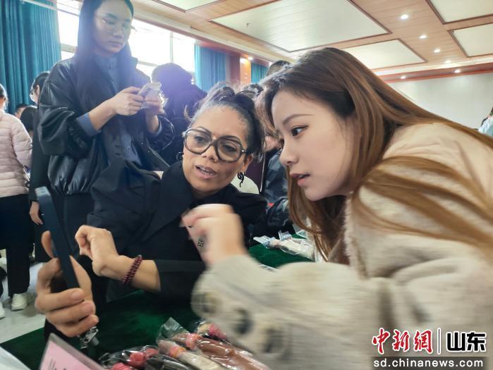 中新網山東新聞3月23日電 “我們主要致力于人發(fā)產品的生產與銷售,如卡子發(fā),膠片發(fā),膠頭接發(fā),發(fā)簾等各類接發(fā)產品。公司產品暢銷國內外市場,與世界上30多個國家和地區(qū)建立了長期的合作關系。”近日,發(fā)制品精準采購對接會在山東省菏澤市鄄城縣舉行,新達發(fā)制品有限公司董事長曹其帥正在向外商介紹公司產品。