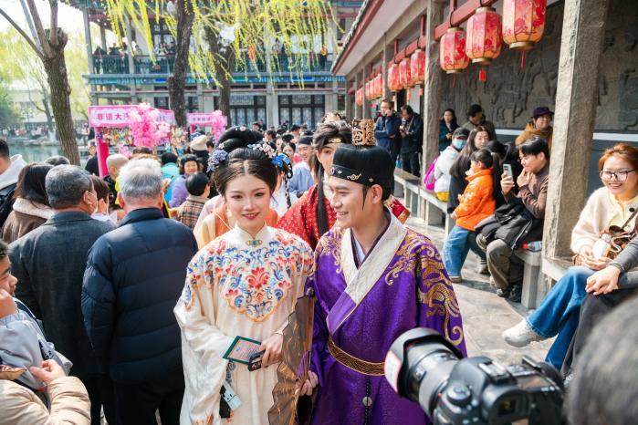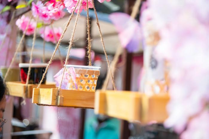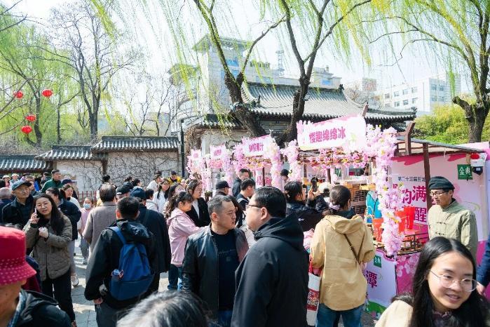 櫻花主題市集貫穿全程,非遺手作、泉水文創(chuàng)、櫻花甜品、創(chuàng)意妝造齊聚一堂,既可觀泉賞花,亦可淘好物、品春味,在煙火與詩意間,感受春日美好。