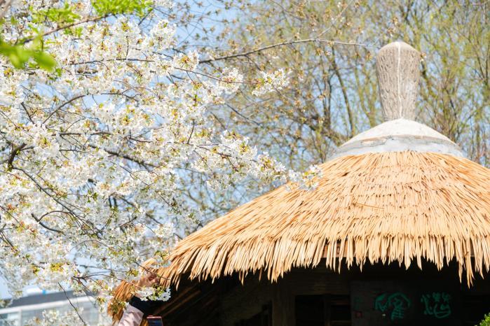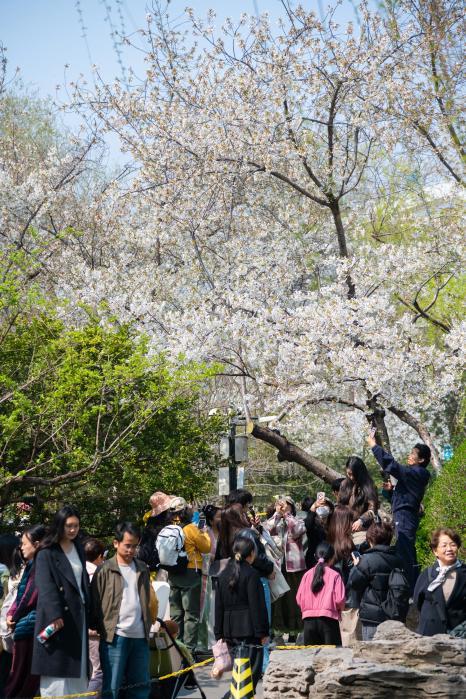 泉城春日,向來以泉潤花妍為勝。五龍?zhí)秲?nèi),清泉潺潺繞亭榭,垂枝櫻、染井吉野等次第綻放,粉白花瓣隨風漫卷,與碧潭清波、飛檐古建相映成趣。從櫻花大道到潭邊曲徑,花影疊泉光,一步一景皆成畫,勾勒出獨屬于濟南的春日詩意。