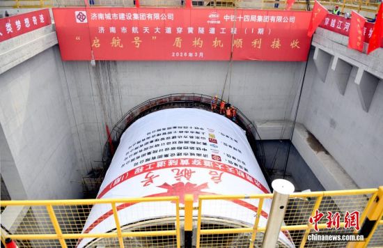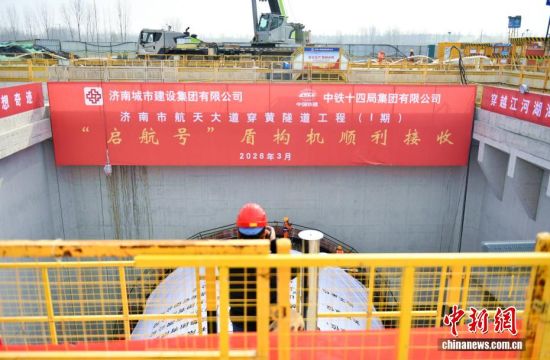 3月20日,山東濟(jì)南,航天大道穿黃隧道南線盾構(gòu)順利貫通。圖為施工現(xiàn)場(chǎng)。自2025年5月始發(fā)以來(lái),“啟航號(hào)”盾構(gòu)機(jī)全程掘進(jìn)平穩(wěn)高效,歷經(jīng)10個(gè)月掘進(jìn)順利實(shí)現(xiàn)貫通,最高月進(jìn)尺達(dá)504米,創(chuàng)造了同類地層大直徑盾構(gòu)施工的新紀(jì)錄。中新社記者 沙見(jiàn)龍 攝