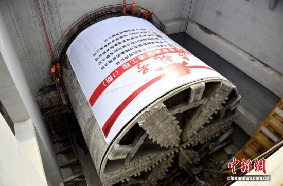 3月20日,山東濟(jì)南,航天大道穿黃隧道南線盾構(gòu)順利貫通。圖為施工現(xiàn)場(chǎng)。據(jù)了解,由中鐵十四局負(fù)責(zé)的盾構(gòu)段長(zhǎng)3252米,采用一臺(tái)15米級(jí)超大直徑泥水平衡盾構(gòu)機(jī)“啟航號(hào)”進(jìn)行施工,工程規(guī)模大、技術(shù)難度高、施工風(fēng)險(xiǎn)高。中新社記者 沙見(jiàn)龍 攝