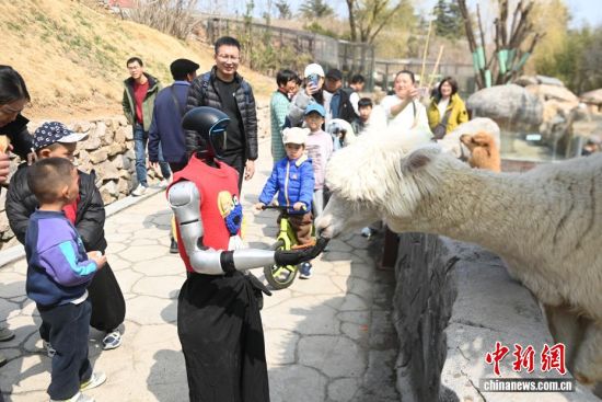 3月21日,位于青島西海岸新區(qū)的青島森林野生動(dòng)物世界春風(fēng)和煦,智能機(jī)器人、機(jī)器狗亮相巡游隊(duì)伍,與舞蹈演員、雜技演員及各類動(dòng)物一同前行,吸引大量游客駐足互動(dòng)。今年清明節(jié)假期,該園將推出“AI青野·萌趣潮玩季”春季主題活動(dòng),其間每日都將舉行AI機(jī)甲萌獸巡游。圖為機(jī)器人投喂動(dòng)物,吸引大量游客駐足觀看。俞方平 攝