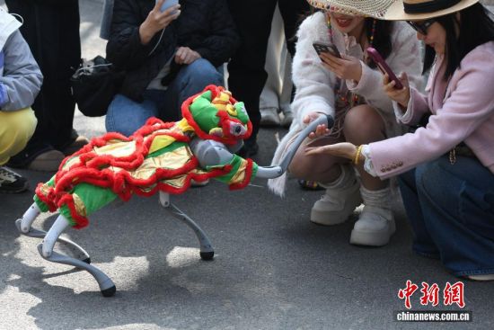 3月21日,位于青島西海岸新區(qū)的青島森林野生動(dòng)物世界春風(fēng)和煦,智能機(jī)器人、機(jī)器狗亮相巡游隊(duì)伍,與舞蹈演員、雜技演員及各類動(dòng)物一同前行,吸引大量游客駐足互動(dòng)。今年清明節(jié)假期,該園將推出“AI青野·萌趣潮玩季”春季主題活動(dòng),其間每日都將舉行AI機(jī)甲萌獸巡游。圖為機(jī)器狗與游客互動(dòng)。俞方平 攝