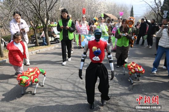 3月21日,位于青島西海岸新區(qū)的青島森林野生動(dòng)物世界春風(fēng)和煦,智能機(jī)器人、機(jī)器狗亮相巡游隊(duì)伍,與舞蹈演員、雜技演員及各類動(dòng)物一同前行,吸引大量游客駐足互動(dòng)。今年清明節(jié)假期,該園將推出“AI青野·萌趣潮玩季”春季主題活動(dòng),其間每日都將舉行AI機(jī)甲萌獸巡游。圖為智能機(jī)器人、機(jī)器狗吸引大量游客駐足了解。俞方平 攝