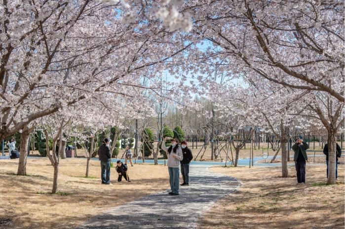 濟南國際鮮花港,是偏愛壯闊花海之人的首選。這里櫻花成片綻放,與郁金香、海棠、桃花等百花同頻,織就五彩春日長卷;ㄖκ嬲、花量繁密,粉白花海如云似霧,視覺震撼又溫柔。