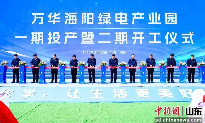 中新網(wǎng)山東新聞3月28日電 (記者 王嬌妮)28日上午,萬華海陽綠電產(chǎn)業(yè)園一期項(xiàng)目投產(chǎn)暨二期開工儀式在煙臺海陽市舉行。