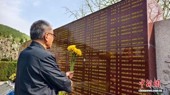 3月28日,吳曉建向遺體捐獻(xiàn)紀(jì)念墻敬獻(xiàn)鮮花。周藝偉 攝
