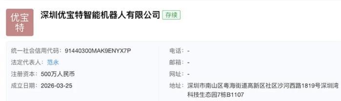 山東優(yōu)寶特智能機(jī)器人有限公司(以下簡稱優(yōu)寶特)新增一筆對外投資。企查查App顯示,3月25日,深圳優(yōu)寶特智能機(jī)器人有限公司在深圳市南山區(qū)注冊成立,注冊資本500萬元,由優(yōu)寶特全資持股,法定代表人范永。