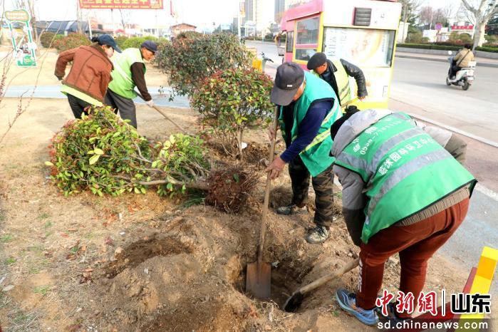 眼下,正值植綠種花的好時節(jié)。臨沭城區(qū)公園、道路綠化帶內(nèi),園林工人正搶抓時節(jié)補植苗木,為城市增綠添彩。