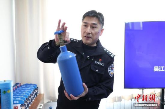 吳江勇在介紹“笑氣”的危害。周藝偉 攝