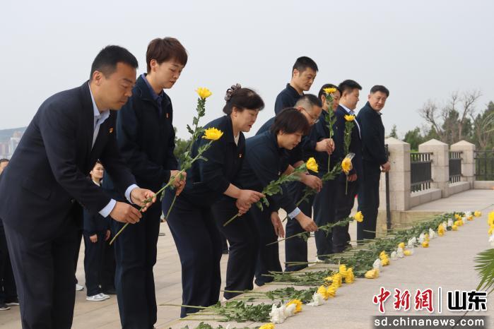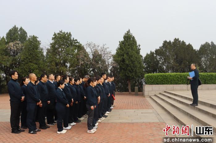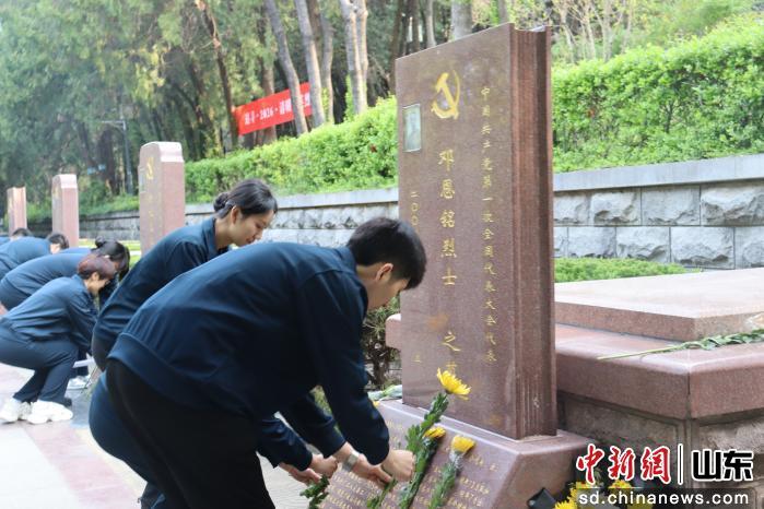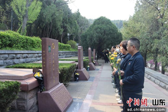 松柏蒼翠寄哀思,英烈精神照初心;顒(dòng)現(xiàn)場,黨團(tuán)員們懷著肅穆的心情,先后在黨的一大代表王盡美、鄧恩銘烈士墓前,在“傳承紅色基因”烈士照片展區(qū),在革命烈士紀(jì)念塔前駐足瞻仰、鞠躬致敬、敬獻(xiàn)花籃,深切緬懷革命先烈的豐功偉績,追憶他們?yōu)槊褡濯?dú)立、人民解放拋頭顱、灑熱血的崢嶸歲月。