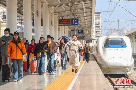 2026年3月13日,旅客在江西南昌站出行。 中新社記者 劉力鑫 攝