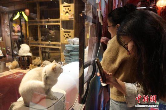 海岱樓鐘書(shū)閣打造的“靈喵寺”吸引游客拍照。趙曉 攝