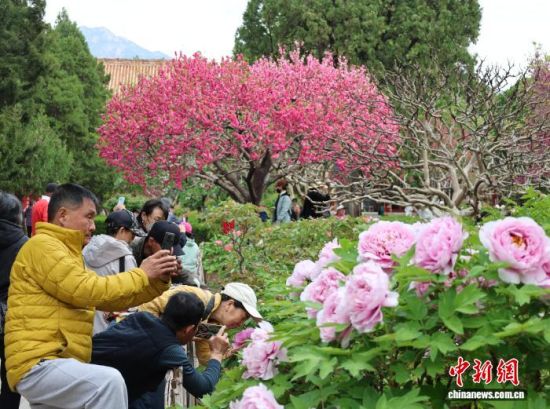 4月8日,山東泰安岱廟內(nèi)繁花似錦,櫻花、桃花、牡丹、芍藥等次第綻放,與古建亭臺相映成趣,吸引游人賞花踏青。當(dāng)天,“鏡頭里的寶藏山東”旅拍采風(fēng)團(tuán)走進(jìn)泰安,捕捉春日芳華。 趙曉 攝
