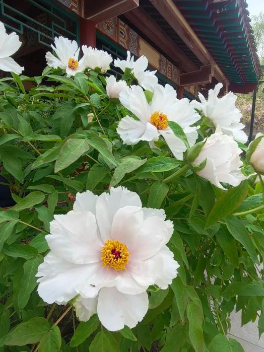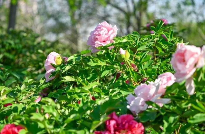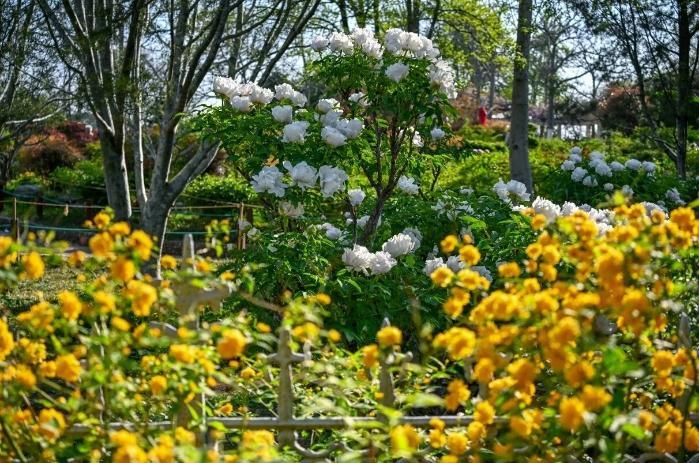 廣場群植牡丹,景園交融。