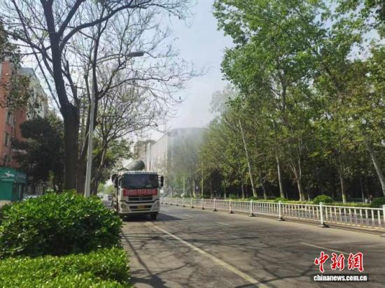 圖為河南漯河霧炮車駛上街頭噴霧增濕抑絮飄。宋陟睿 攝