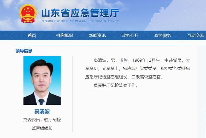日前,山東省應急管理廳官網(wǎng)更新顯示,竇清波已任山東省應急管理廳黨委委員、省紀委監(jiān)委駐省應急廳紀檢監(jiān)察組組長、二級高級監(jiān)察官。