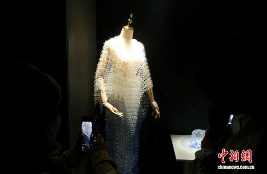 在淄博陶瓷琉璃博物館,觀眾欣賞琉璃裙作品。趙曉 攝