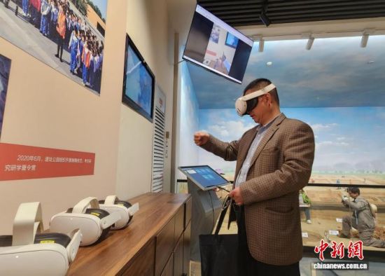 觀眾在大汶口遺址博物館通過數(shù)字技術(shù)MR體驗(yàn)考古發(fā)掘。趙曉 攝