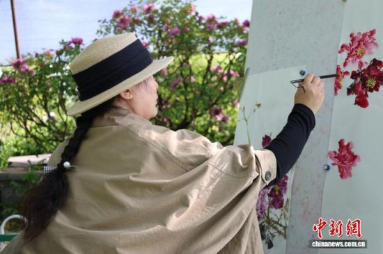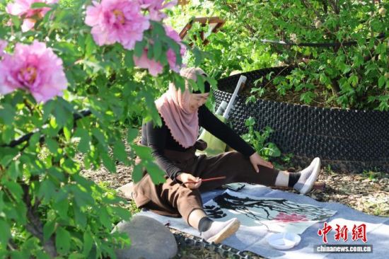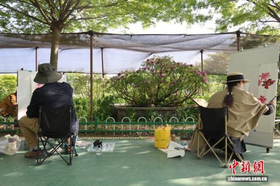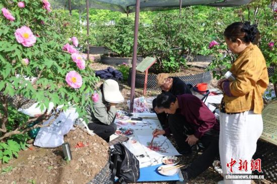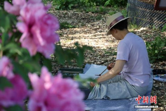 4月10日,位于山東菏澤魯西新區(qū)的菏澤牡丹園,各色牡丹爭(zhēng)奇斗艷,吸引畫(huà)師寫生。中新社記者 祁建月 攝