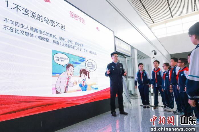 中新網(wǎng)山東新聞4月13日電(梁犇 沈泰)4月13日,在第11個(gè)全民國家安全教育日來臨之際,濟(jì)南出入境邊防檢查站聯(lián)合濟(jì)南市國家保密局、山東省公安廳機(jī)場(chǎng)公安局、濟(jì)南機(jī)場(chǎng),在濟(jì)南機(jī)場(chǎng)開展“國門一線共上國家安全教育課”主題宣傳活動(dòng),山東師范大學(xué)第二附屬中學(xué)50名師生代表走進(jìn)國門一線接受沉浸式安全教育。