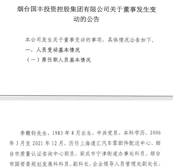 煙臺(tái)國豐集團(tuán)2名外部董事履新