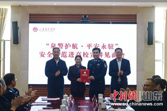 濟南市公安局內(nèi)保支隊副支隊長李哲宣讀了《山東省公安廳對全省高校文化單位成績突出保衛(wèi)組織和個人予以表揚的通報》,并向?qū)W校頒發(fā)榮譽證書。山東職業(yè)學院安全保衛(wèi)處獲評2025年度“成績突出保衛(wèi)組織”。