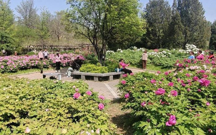 除牡丹與櫻花,園內(nèi)碧桃、菊花桃等花卉亦開得熱烈奔放。粉艷花朵綴滿枝椏,明艷動人,與前兩種花木相映成趣,為春日畫卷再添一抹濃麗色彩。