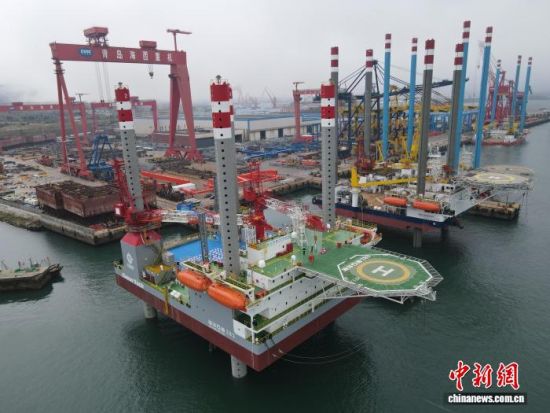 4月18日,中國(guó)自主研發(fā)建造的首座海上移動(dòng)式多功能措施平臺(tái)“增產(chǎn)一號(hào)”在山東省青島西海岸新區(qū)交付,標(biāo)志著中國(guó)在海上油田高效開(kāi)發(fā)裝備領(lǐng)域取得重要突破。圖為該平臺(tái)靠泊在碼頭。(無(wú)人機(jī)照片) 楊偉 攝