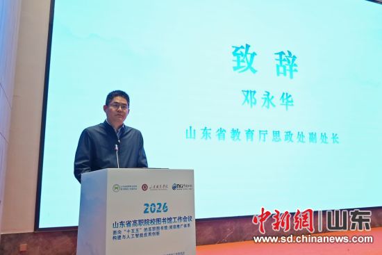 山東省教育廳思想政治工作處副處長鄧永華出席會議并講話。他強(qiáng)調(diào),高職圖書館作為職業(yè)教育的重要文化陣地,要以人工智能為智慧引擎,以產(chǎn)教融合為發(fā)展根基,加快推進(jìn)從傳統(tǒng)文獻(xiàn)服務(wù)中心向文化育人中心、知識服務(wù)中心、創(chuàng)新支持中心的轉(zhuǎn)型跨越,用書香浸潤校園、用文化涵養(yǎng)匠心,著力培育新時代“齊魯工匠”,為職業(yè)教育高質(zhì)量發(fā)展注入文化動能。