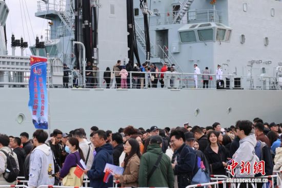 4月22日,人民海軍成立77周年北部戰(zhàn)區(qū)海軍艦艇開放活動在山東青島拉開序幕,吸引大量民眾登艦參觀。4月23日是人民海軍成立77周年紀(jì)念日,海軍于23日前后在中國十多個城市舉行軍營開放活動,四十多艘現(xiàn)役艦艇將與公眾見面。本次活動,北部戰(zhàn)區(qū)海軍在青島的兩個碼頭開放6艘艦艇,將持續(xù)至4月26日。圖為民眾參觀開放艦艇。張孝鵬 攝